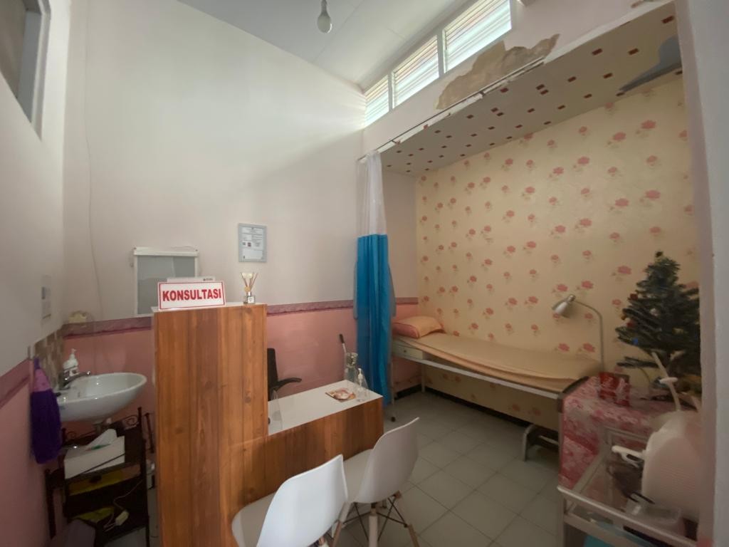 Ruko terdiri dari 2 lantai, 2 kamar mandi, dan ruangan praktek yang disekat